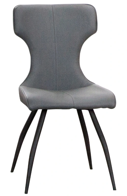 This elegantly designed chair features a unique curvature, complementing any dining table shape. Crafted with a durable frame and upholstered in high-quality charcoal gray faux leather, it offers timeless style and lasting durability. Matte black powder-coated metal legs ensure stability, while the medium-high cushioned back promotes posture and comfort.Read More