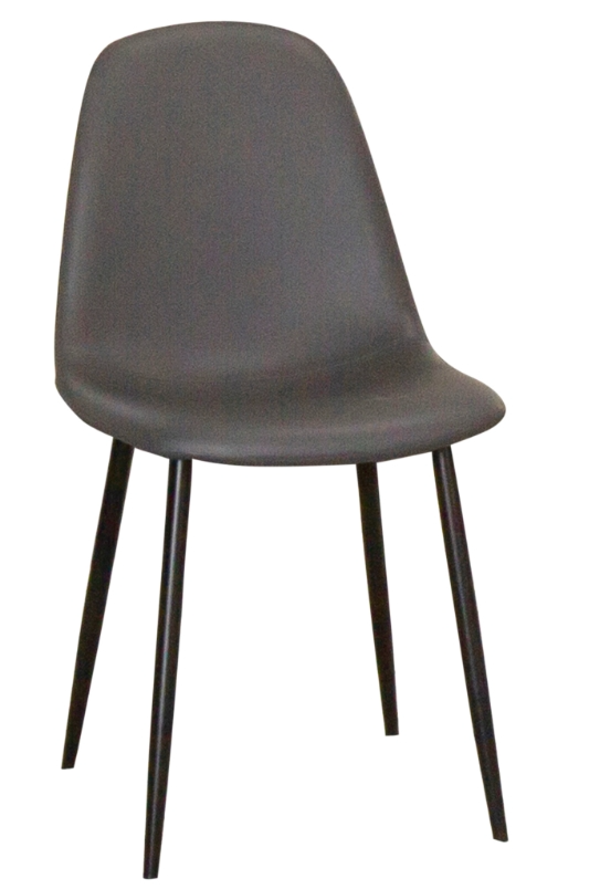 Blending Scandinavian minimalism with mid-century modern charm, this sleek dining chair offers both style and comfort. Its angular, tapered black metal legs add a touch of Art Deco sophistication, seamlessly elevating any space. Crafted with a durable frame and upholstered in high-quality rich charcoal gray faux leather, it delivers timeless elegance and long-lasting durability.Read More