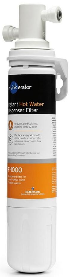 The F-1000S Water Filtration System is designed for exclusive use with InSinkErator water dispensing systems. It reduces particulates, chlorine taste and odor, allowing you to enjoy better-tasting hot beverages. It has a 1/4 in. quick-connect fitting and is replaced easily without contact with used filter material.Read More